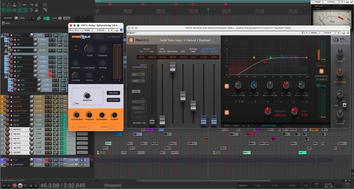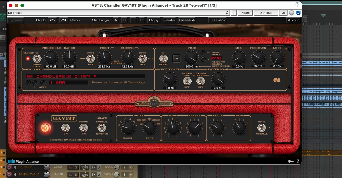 따라서 기타를 녹음해서 보낼 때는 어느 정도 기타리스트가 의도한 사운드의 방향도 같이 전달해 줘야 합니다. 그래서 필요하다면 새츄레이터나 리버브, 딜레이도 적극적으로 적용해 랜더링하기도 합니다.